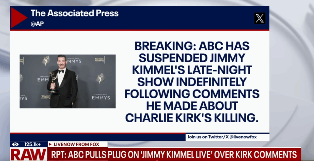 Kimmel, a respected comedian and commentator, is being silenced for voicing his opinion about MAGA and Charlie Kirk — opinions shared by a majority of Americans. His comments were not rude, disrespectful, or celebratory; rather, they were part of his right to free speech, a cornerstone of our democracy which Charlie Kirk vehemently defended, and a common refrain from Kirk’s supporters after his death. Kimmel shared an opinion which millions of Americans agree with and gave us all a voice, and ABC and people who disagree have simply decided to silence us all out of fear and fealty to this administration.