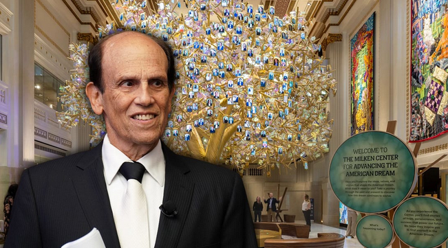 Touted as a “tourist attraction,” his museum glorifies predatory capitalists (like him), hailing them as heroic American geniuses! The infamous junk-bond scammer grandiosely labels his monument the Milken Center for Advancing the American Dream. It’s located right across the street from the White House (though it’s rumored that even his buddy Trump considered Michael’s “Monument to Mammon” to be too explicitly obscene to attach it directly to the East Wing).