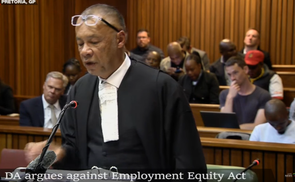 The chairperson of the center-right DA, widely seen as a predominantly white party, said the Employment Equity Amendment Act discriminated against other groups.
