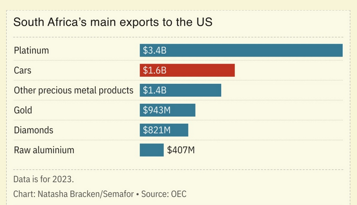 US President Donald Trump imposed 30% levies on South African goods over what he claims are laws that discriminate against white South Africans.