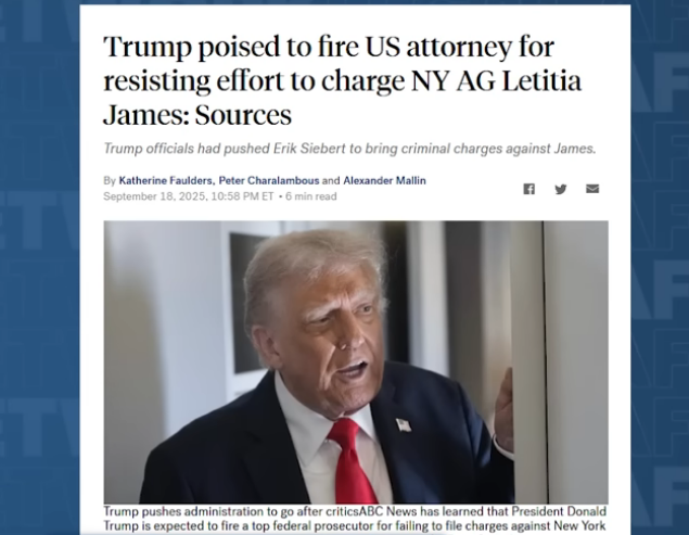 Todd Gilbert resigned about a month after his appointment as interim U.S. Attorney as he refused Department of Justice pressure to demote a longtime non-political attorney from the leadership team in his office. Erik Siebert resigned on September 19 as he refused Administration pressure to bring a baseless criminal case against someone who President Trump sees as a political opponent.